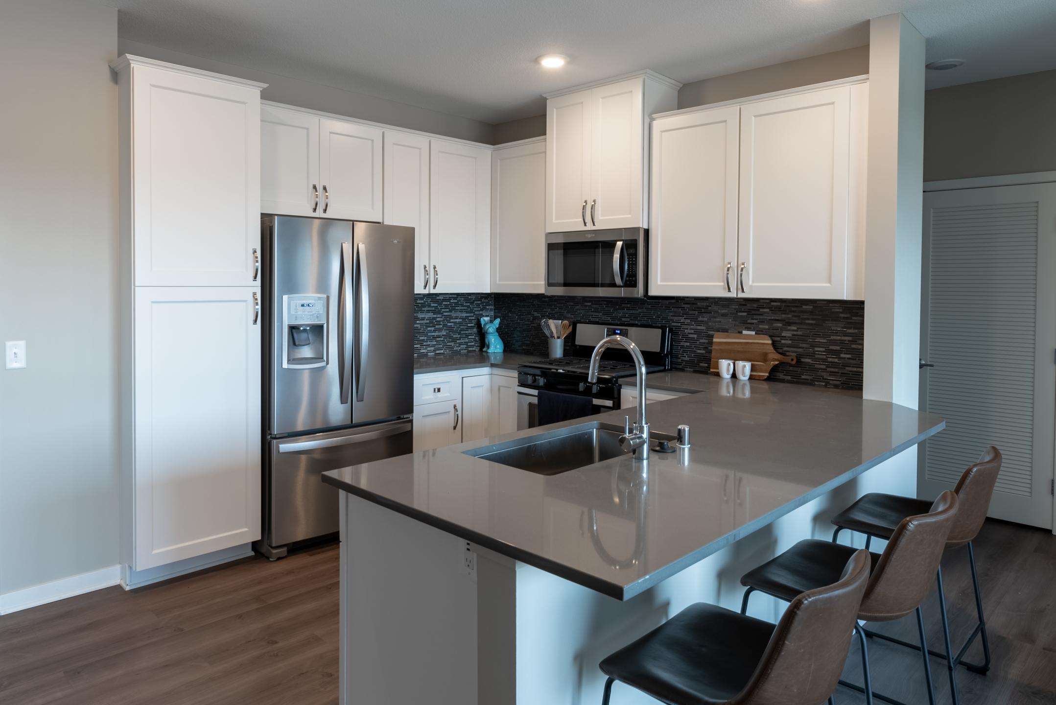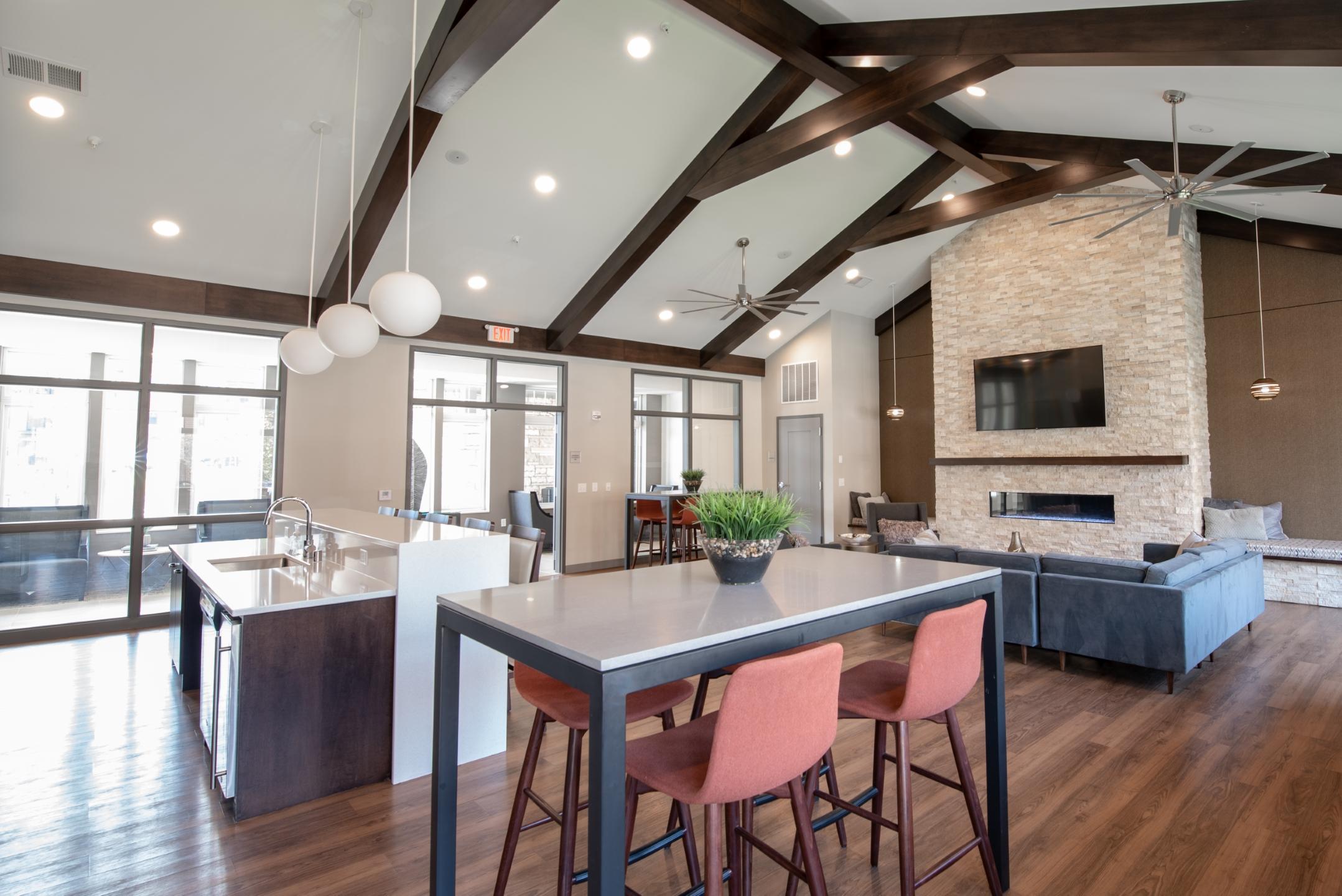Apartments utilize multiple design schemes and feature spacious kitchens equipped with islands and peninsulas, hardwood-style flooring, granite or quartz countertop options, stainless-steel appliances, attractive backsplashes, glass-top stoves, and built-in microwaves. Each residence also includes patios and/or balconies and utilize energy-saving LED lighting. Construction of community amenities included a clubhouse, resort-style pool, a 24-hour fitness center, a yoga and spin studio, outdoor grills, fire pit, party room, temperature-controlled underground parking, trash chutes on every floor, and a bicycle maintenance station. Ascend at Woodbury was also built with a coffee bar, a conference room, and even a dog-washing station—all accommodations were thoughtfully designed to enrich the lives of its tenants