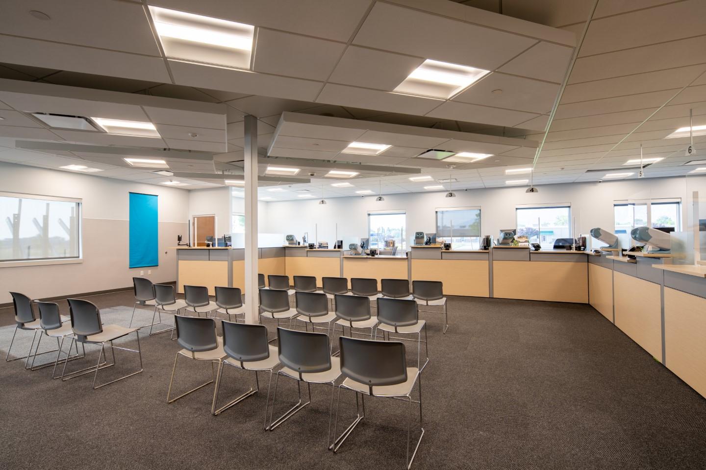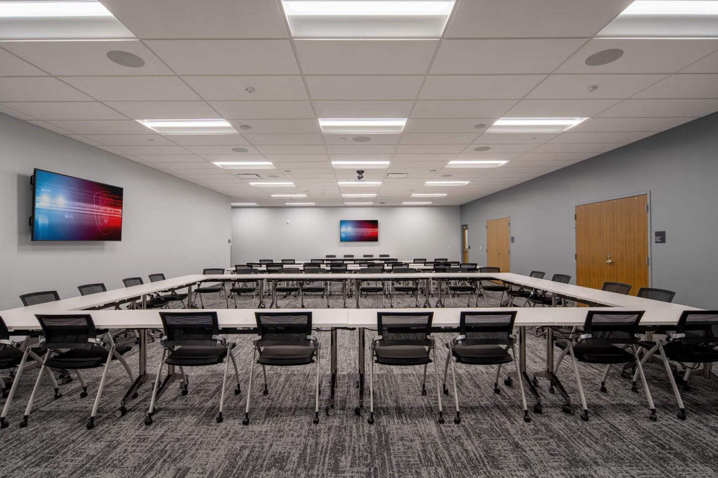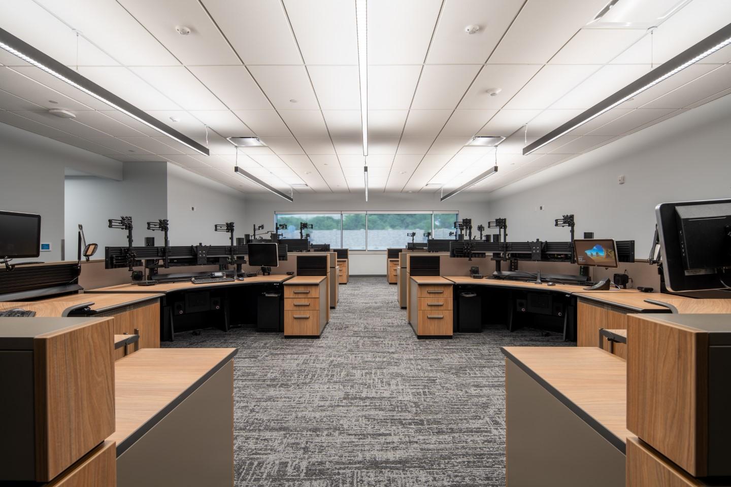 Big-D served as design-builder on this consolidated public safety facility, partnering with Galloway Co. to bring together the Highway Patrol, DPS Emergency Communications, and Driver License Divisions under one roof. The single-story, steel framed masonry building accommodates separate working areas for each agency along with shared space for fitness, breaks, and training. The project required close coordination across multiple stakeholders and careful attention to specialized systems. Detention areas for Highway Patrol demanded enhanced security features, while the building’s role as an emergency dispatch hub called for advanced communications infrastructure. Installation of the radio tower was particularly complex, requiring meticulous planning to meet specific RF (radio frequency) pathways and L3 Harris grounding standards. Big-D’s scope extended beyond the building itself to include all site development, including the Driver License test course.