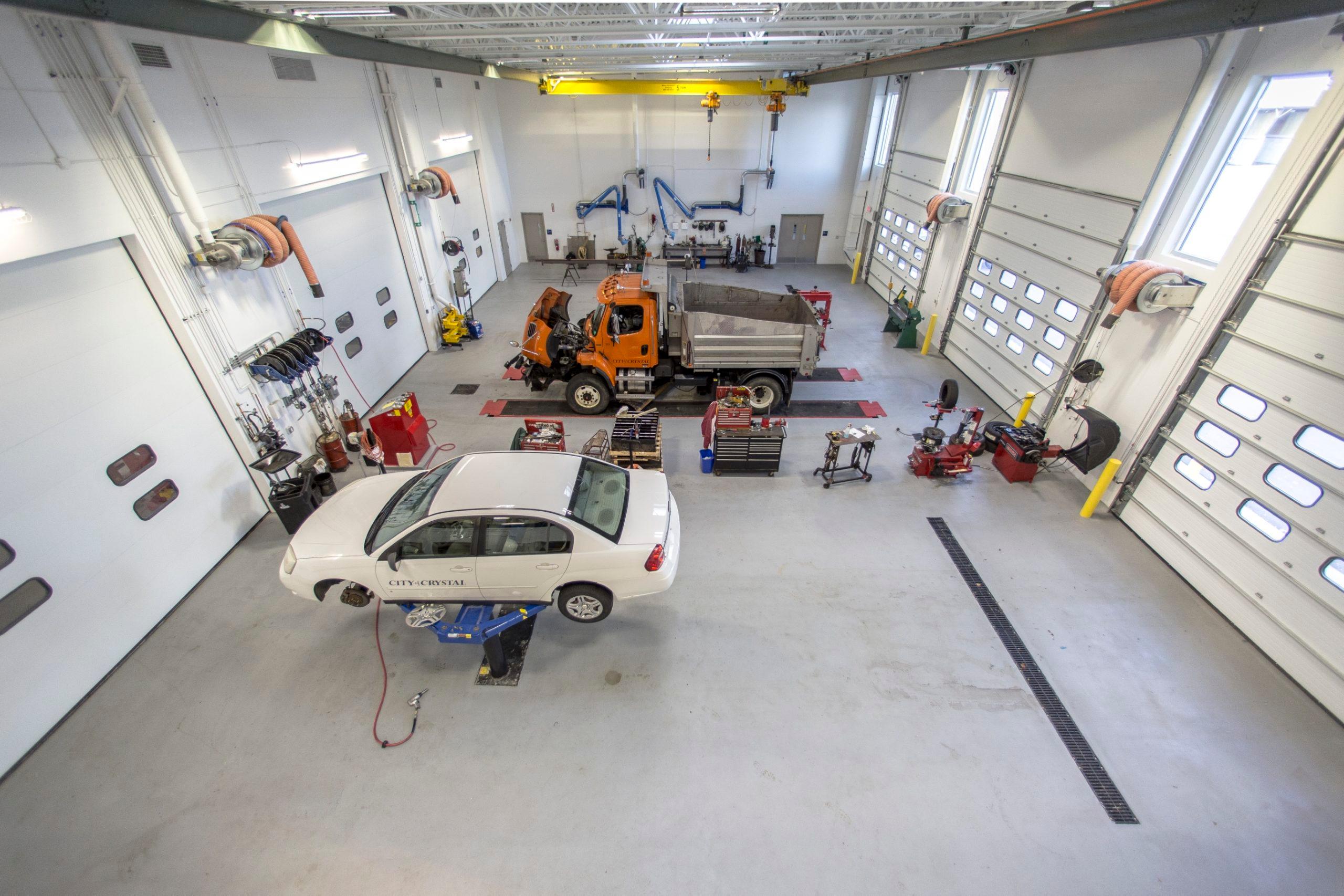 The Crystal Public Works Building is a new, single-story, insulated precast concrete panel structure for the storage and maintenance of municipal vehicles and equipment and the building replaced the City’s outdated facility.