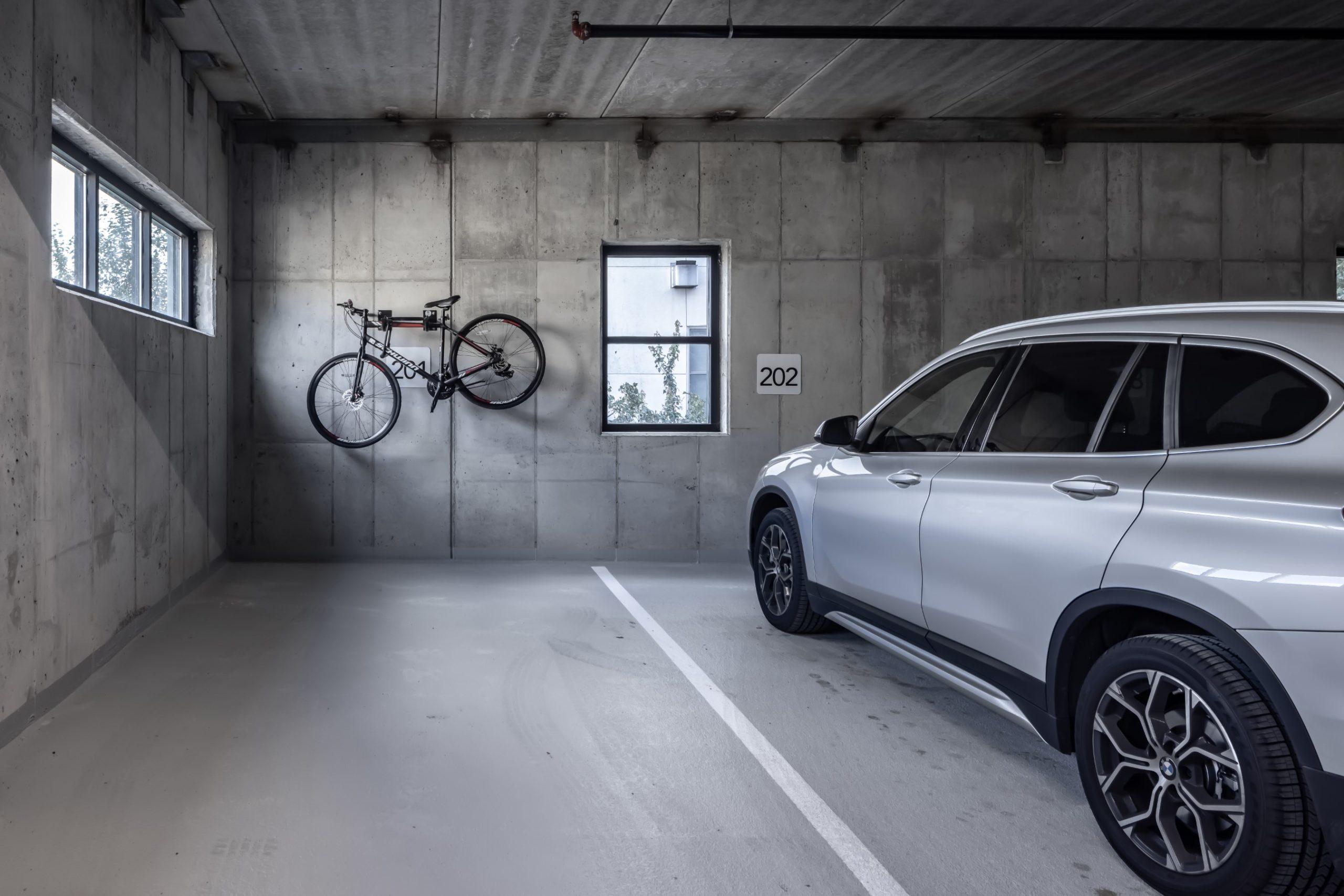 The project consists of four stories of wood-framed construction above two levels of precast concrete below-grade parking. Each parking level has apartment unit on the same level that walk out onto grade. The building features a mix of one and two-bedroom apartments and the scaled-down size of the building presents an intimate and exclusive feel. Interior finishes are modern and high-end including granite countertops, subway tile, stainless steel appliances, and hard surface flooring. The building exterior is varied with brick at the lower level and a mix of fiber cement lap siding and metal panel above. Construction also included a laundry room, aluminum balconies on most units, an elevator, electrical vehicle charging stations, and minimal common area space.