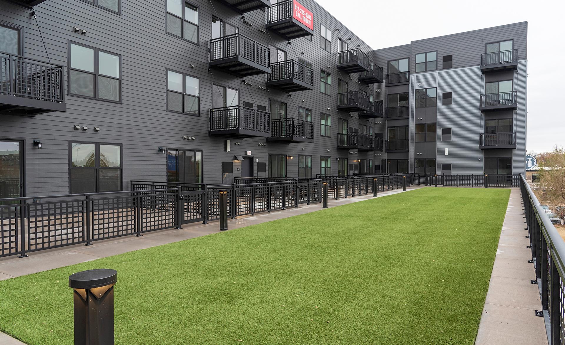 Tyler Street Stacks is a new high-end, multi-family housing project located near downtown Minneapolis. The six-level building is a wood-framed structure containing a mix of 118 studio, one-bedroom, and two-bedroom units, 11 affordable housing units, and 4,824-sf of retail space. It features a two-level residential parking garage with 79 parking spaces. Construction of resident amenities included 6th level lounge with serving kitchen, two podcasting rooms, an indoor pet exercise area, micro-offices, a fitness center and yoga room, co-working spaces, and bike storage. Exterior scope elements included construction of a 2,444-sf sport field on top of the parking garage and an outdoor community deck with fire pits, grill station, and pizza oven, as well as landscaping and site improvements.